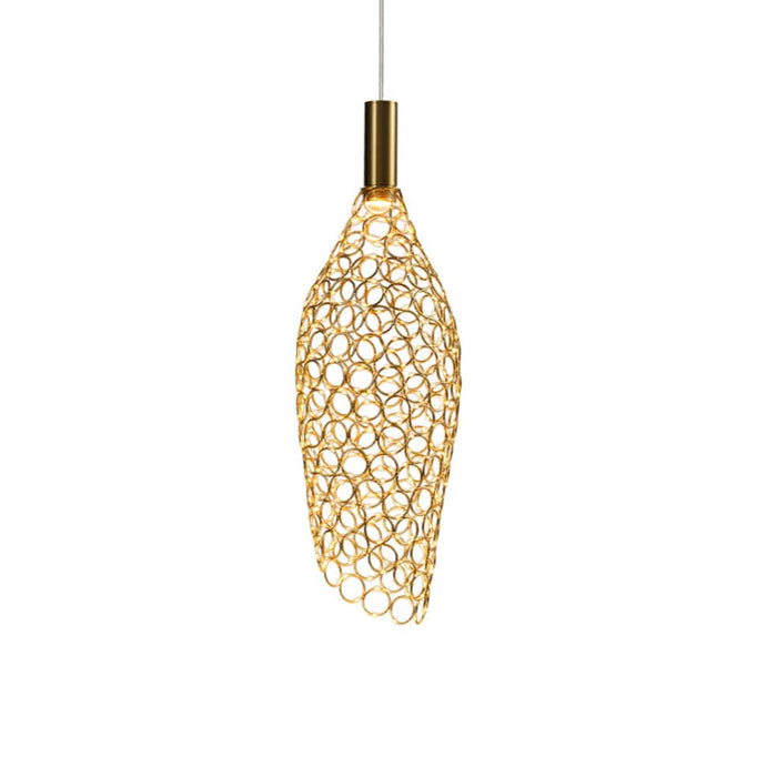 Elevate your interiors with the Glowtide Pendant Light in Gold, Chrome or Black. A captivating blend of minimalist form and modern luxury. Crafted with a delicate metal ring mesh, this pendant diffuses light in a warm 3000K glow, creating elegant shadows and visual interest.