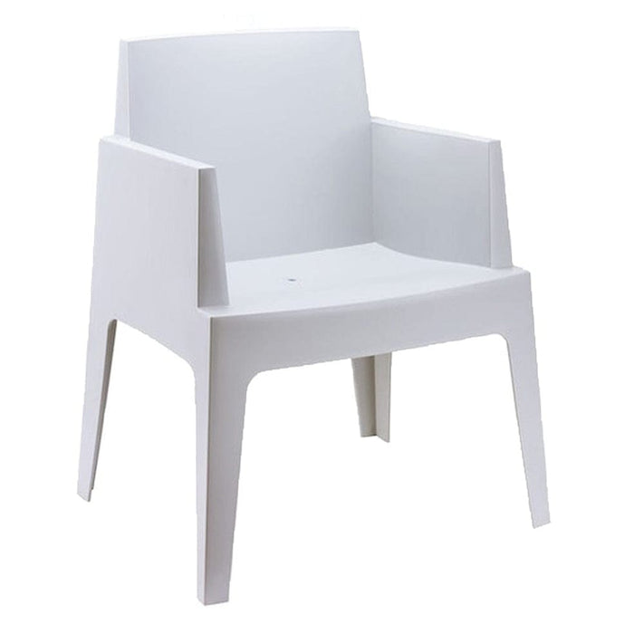 Box armchair is manufactured from recyclable polypropylene and is strong and stable. This stacking chair is suitable for outdoor contract use.