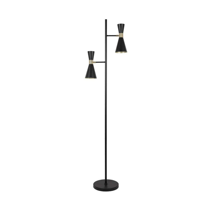 Introducing the Larissa Metal Floor Lamp in sleek black. This stunning lamp is both useful and stylish, with two lights for optimal lighting. Built in On and Off Foot Switch, Elevate your living space and add a touch of elegance with this must-have piece!