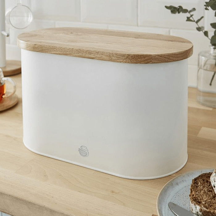 Swan Nordic Bread Bin with Cutting board - Soft White